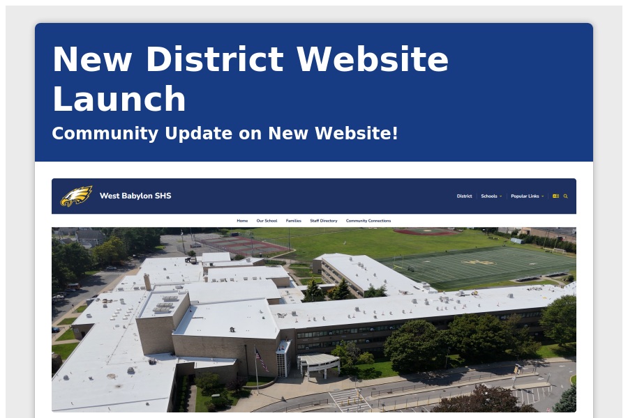 New District Website Launch Community Update on New Website! Dear West Babylon Community, We're thrilled to announce the upcoming launch of our new a. . .