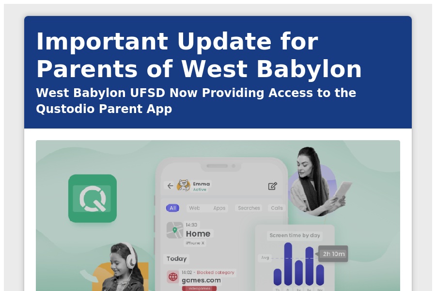 Important Update for Parents of West Babylon West Babylon UFSD Now Providing Access to the Qustodio Parent App Dear West Babylon Parents/Guardians, As part of . . .